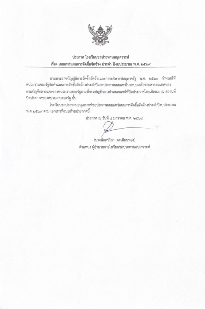 เรื่อง การเผยแพร่การจัดซื้อจัดจ้าง ประจําปีงบประมาณ 2569