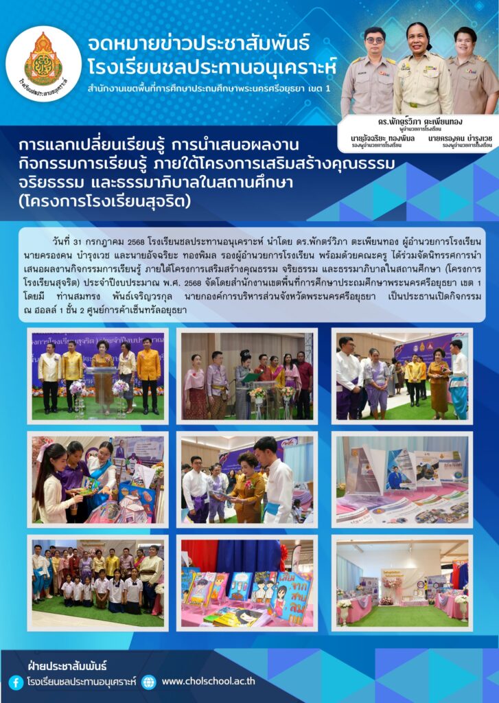 💙 อ่านข่าวทั้งหมดของโรงเรียนชลประทานอนุเคราะห์: https://cholschool.ac.th/category/ข่าวประชาสัมพันธ์/
